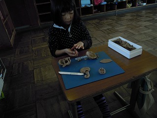 続いて、2年生は粘土でいろいろなものを製作中。本当に熱心に、楽しそうに実施していました。この授業の合間に、養護の先生が一人ひとり「聴力検査」を実施しています。今は、各健康診断が計画的に行われ、子どもたちの成長と昨年度から異常がないかどうかを確認している検診の真っ最中です。