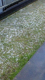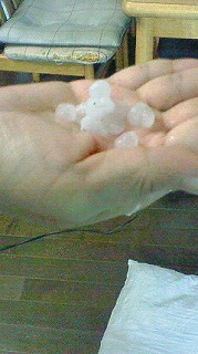 写真は、我が家の庭に降った雹とその夜のスーパームーンです。