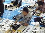 体育館という普段とは違う環境でしたので、書きにくかったとは思いますが、自分の思いを一生懸命書く姿がありました。また、1・2年生は硬筆で各教室で行いました。