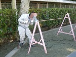 もう1枚の写真は、昨日の遊具検査で指摘された鉄棒と逆上がり練習機をさっそく教育委員会のほうで直していただきました。逆上がり練習機の方は木を張り替えた後、設置していただく予定です。