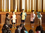 今日の1限目の全校集会は人権集会を行いました。各学年で取り組んだ標語をそれぞれの学年が発表の仕方を工夫しながら、発表を行いました。「友だち」「仲間」「やさしさ」という言葉がたくさん使われていました。最後に「友だちになるために」の歌を手話を使って全校で歌いました。