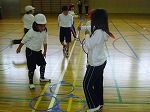今日は、本校に2つの学校から先生方に来ていただき、2年生の体育の授業を参観していただきました。2年生の体育では、アマレリーニャというブラジルの遊び(日本のケンパに似ています)を使って、体ほぐしの運動に取り組んでいます。