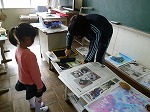 今日の写真は、2年生の英語学習、6年生の図画作品と図書館ボランティアさんの掲示物です。