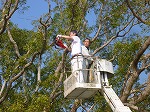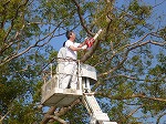 本校の運動場のクスノキの手入れをしてもらいました。老木のため、今年の台風も含めてだいぶクスノキの体にはこたえているようです。あちこちで枝が枯れて、腐りかけている箇所が見受けられますので、高所作業車で枯れた枝を切ってもらいました。