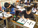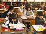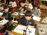 3年生の書写の様子です。1・2年生の時は硬筆でしたので、初めての毛筆の作品を仕上げていますが、最初の頃に比べてずいぶん上達しました。