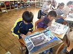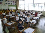 今日は、1年生の図工の授業では、作品展の版画に「うみのなかま」の描き加えをしていました。自分で生き物を考えながら、作品の完成を楽しんでいました。3年生は、書写で「小」の作品練習、作品展では「大」という作品でしたが、毛筆もだいぶ慣れてきたようです。2年生は体育の時間で「体ほぐし運動」という新しい教育内容で新聞紙を使った運動を楽しんでいました。