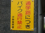 柏・柏団地から登校する児童が毎日通るトンネルにバイクが通行しているので危険という声に、伊勢警察署や伊勢市交通安全協会のほうでご尽力いただき、写真のような看板を設置いただきました。看板だけでは効果も半減しますので、駐在所や交通安全協会の方でも見守りのご協力をお願いしました。
