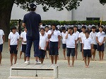 今日から全体練習が始まりました。今日は、入場行進とラジオ体操を全校で練習をしました。
