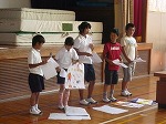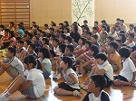暑い中でしたが、集会での聞く態度がよく、児童会の担当の先生からお褒めの言葉をいただきました。
