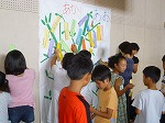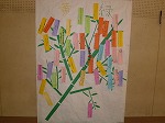 七夕にまつわるビデオを見た後、各自の願いを紙で作った笹に張りました。