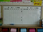 さて、昨年度1年から3年までの予定黒板をホワイトボードにしてもらいましたが、今年は4年から6年の予定黒板をホワイトボードにしました。高学年用のものは先生方のアイデアで、2日分の予定が書けるようにしました。