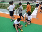 新しくなったプールサイドに5年生がいるので、何をしているのか様子を見に行くと、ソーラーカーの実験をしていました。7月1日には、伊勢工業高校から先生が来ていただき、実際にソーラーカーの仕組みや試乗をさせていただく予定でいます。お天気がよいといいのですが。