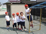 さて、いよいよ今日から学校での1週間の生活が始まりました。1年生の音楽の時間は楽器の演奏、体育では、リレー、うんていと登り棒の練習をしていました。