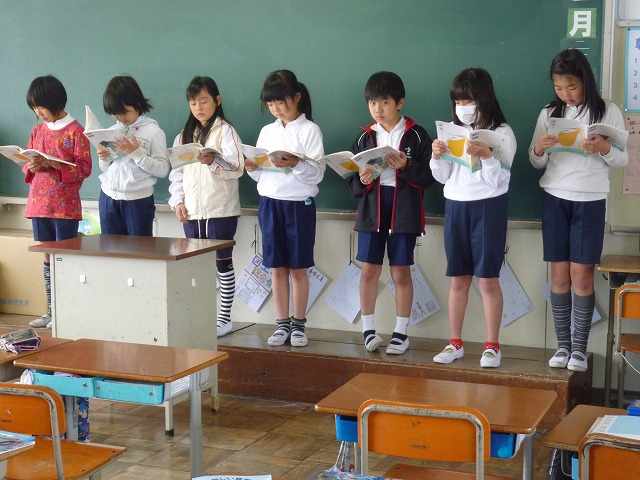 4年生は、「白いぼうし」の音読練習をグループに分かれて、行っていました。