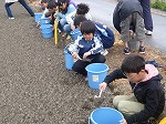さて、5限目は、田んぼのほうへ行き、バケツ稲を育てるための土をもらって来ました。米作り体験を田植えと稲刈りだけで終わるのではなく、今年は、田植えの事前学習を行ったり、バケツ稲で稲の生長を観察したりする時間を設けたいと思います。ちなみに、事前学習は県の農林の職員の方が5月9日に来ていただき、次の日に田植えを予定しています。お天気に恵まれるといいのですが。
