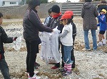 海岸まで、1年から6年の縦割り班でクイズやミッションを通過しながら、海岸に着きました。海岸では、主に漂流物の回収をしましたが、どの班も袋にいっぱいのごみを拾いました。ごみがたくさんあるのはいいことかはまた別の問題ですが、子どもたちは寒風にも負けず、元気いっぱいでした。
