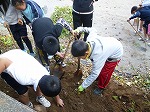 今日は、4年生が昼休みのわずかな時間を使って、少し遅いですが、サツマイモの収穫をしました。初めての経験の子どももいて、芋を傷つけないよう、周りから慎重に掘っていましたが、大きな芋が出ると歓声が上がっていました。