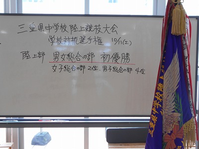 10月11日(土)、三重県中学校陸上競技大会学校対抗選手権が行わました。