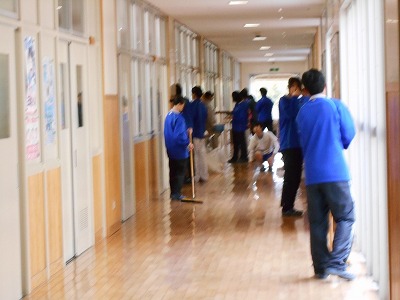 今日の5限目は校内の大掃除、放課後は廊下のワックスがけを行いました。