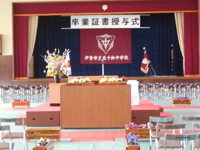 とても穏やかなお天気のもと、五十鈴中学校第60回卒業証書授与式が行われました。100名の卒業生が五十鈴中学校を巣立っていきました。心が震えるような素敵な3年生の合唱「群青」の後には、自然と温かな拍手が沸き起こりました。