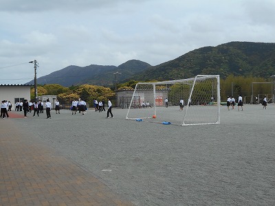 もう一つの写真は、昼休みの運動場の一部の様子です。写真では見えませんが、運動場の中央やテニスコートでも体を動かしている生徒がたくさんいます。