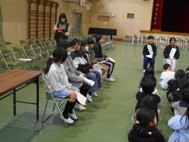 本日(3/4)5限目に、「令和8年度前期児童会役員選挙立会演説会」を行いました。現5年生から2名の会長候補、3名の副会長候補、3名の書記候補が、現4年生からは3名の書記候補が、この児童会選挙にかける自分たちの思いを語っていました。投票結果は、明日、発表されます。どの候補者が当選したとしても、城田小学校を良い方向に導いてくれると思います。また、選挙管理委員の子どもたちも演説会進行を上手にしてもらいました。