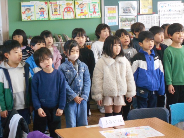 本日(3/5)3限目に、「学校安全ボランティアさん」感謝の会を行いました。日頃、子どもたちの登下校の見守りをしていただいている方々を迎え、子どもたちが「6年生を送る会」で披露した歌のプレゼントをしました。その後、グループに分かれて「すごろく」をして楽しみました。最後に、子どもたちが作ったカレンダーをプレゼントしました。参加された方からは、「元気な子どもたちですね」「楽しかったです」というお言葉をいただきました。