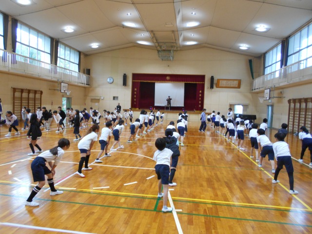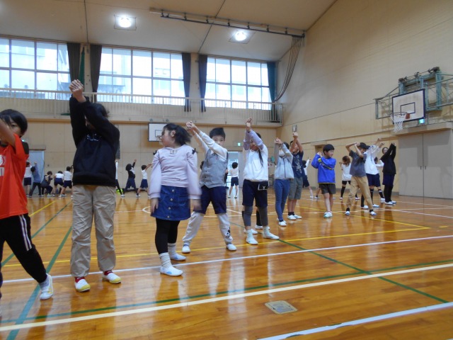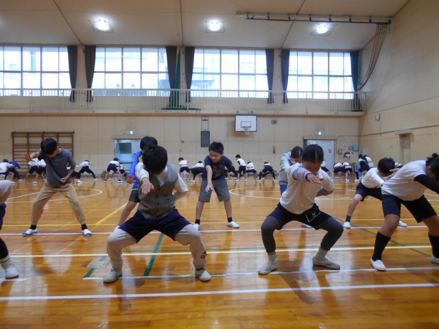 運動会で披露する表現の練習を、3・4年生が体育館で行いました。今回は、表現時の隊形移動を中心にしていました。最後は、3曲を通しで隊形移動もしながら踊っていました。