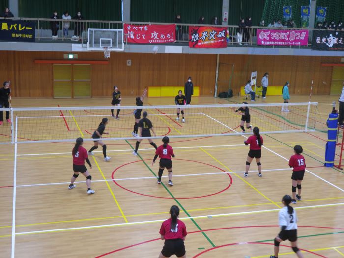 1月24日(土)に松阪市立久保中学校の体育館で第54回三重県中学生バレーボール新人大会(女子の部)が開催されました。結果は、1回戦で陽和中に2−1で勝ちましたが、2回戦で明生中0−2で残念ながら負けました。