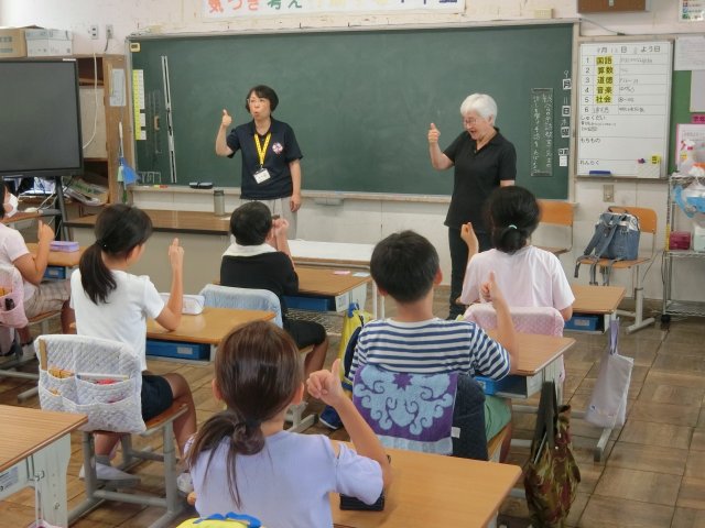 2025/09/18 手話教室を行いました 9月11日(木)5限目に1年生、6限目に4年生を対象に、9月12日(金)5限目に2年生、6限目に3年生を対象に、9月18日(木)5限目に5年生、6限目に6年生を対象に手話教室を実施しました。手話教室については、2〜6年生の子どもたちが経験しています。 2年〜6年生は、昨年度の復習ということで、「こんにちは」「おはよう」などのあいさつの手話から始めました。その後、「手話以外の聴覚障害者とのコミュニケーションのとり方」には、筆談・口話・ジェスチャー・空書きがあることなどを学習しました。最後に、「誕生日」「自分の名字」「家族の呼び方」「スポーツの名称」などを学びました。1年生も「こんにちは」「ありがとう」「楽しい」などから教えていただきました。 このような活動は、子どもたちにとって、世の中には色々な方がいることを知る機会となりります。今後も、全学年で手話教室を継続して実施していきたいと考えます。 |