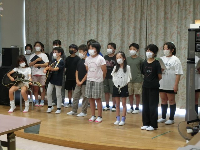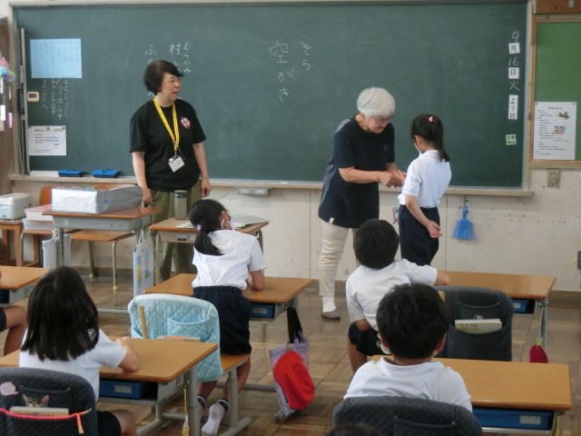 2025/09/25 正邦苑との交流を行いました 9月25日(木)の午後に、4年生が正邦苑の利用者の方と交流しました。福祉グループが交流会を進行しました。まず、子どもたちのギター伴奏で、「紅蓮華」を全員で歌いました。すばらしい歌声でした。その後、魚釣りゲームをしました。児童と利用者の方が、1対1で話をしながらゲームを進めていました。30分間でしたが、子どもたちにとっていい経験となりました。正邦苑の皆様ありがとうございました。 |