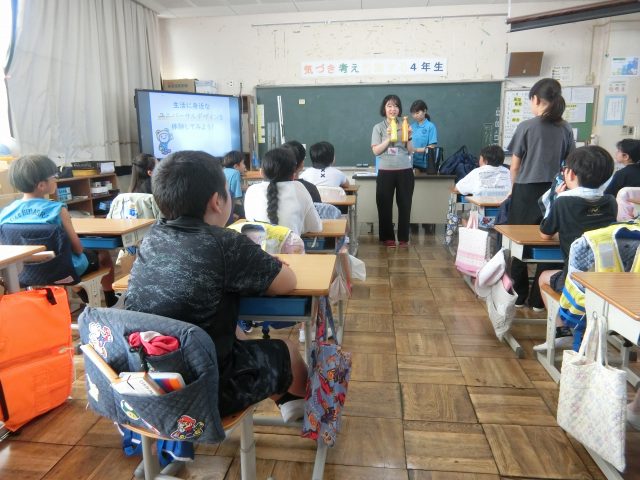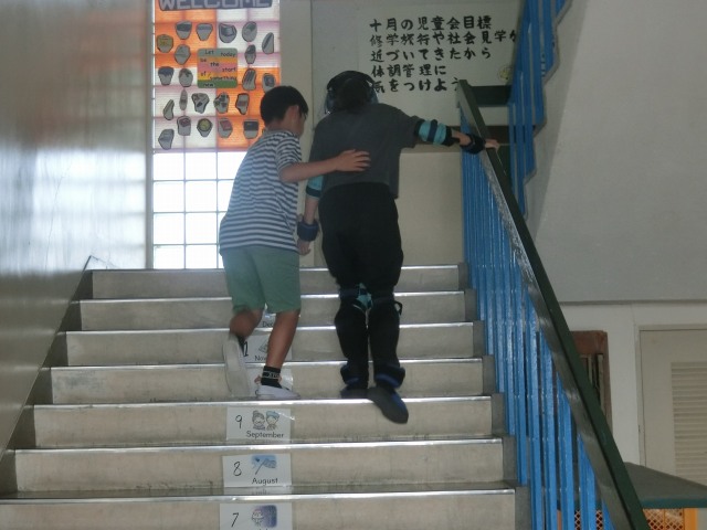 2025/10/08 福祉体験学習を行いました 10月8日(水)の3・4限目に伊勢市社会福祉協議会の方にお越しいただき、4年生が福祉体験学習を行いました。3限目はユニバーサルデザインを含む福祉について学びました。ユニバーサルデザインが用いられているハサミやオセロなどに実際に触れることができました。4限目には、高齢者疑似体験学習を行いました。高齢者体験装具を装着し、教室から図書室に入り、1階東昇降口におりて、教室に戻る体験をしました。高齢者と介助者の役割を交代し、行いました。高齢者の身体状況を体験し、自分にどの様なことができるかを考えるきかけとなりました。さらに学習を深め欲しいと思います。 |