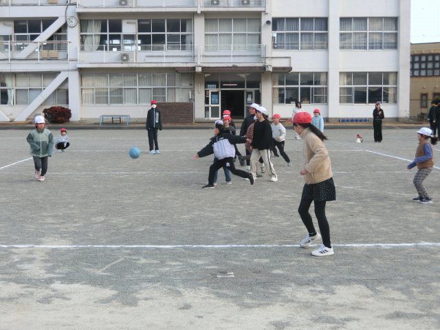| 2026/01/20 なかよし集会を行いました 1月20日(火)1限目になかよし集会を開催しました。体育館で、保健委員会から「押し活てあらい」の結果発表がありました。その後、運動場に移動し、たてわり班でドッジボールを行いました。風が強い寒い中でしたが、子どもたちは、元気にドッチボールを楽しんでいました。 |
