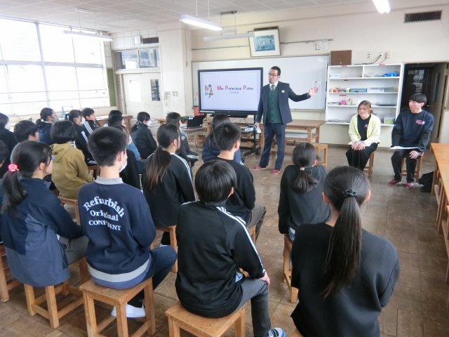 | 2026/02/10 ネットトラブル防止教室を行いました 2月10日(火)5限目に5・6年生を対象に、ネットトラブル防止教室を行いました。伊勢市では、伊勢市教育委員会事務局・デジタル政策課・危機管理課が連携して、子どもたちがデジタル社会で、安全かつ主体的に活躍できる力を育む、『「守る・育てる」安心プロジェクト』を実施しています。当日は三重県警察本部生活安全部少年課と少年警察学生ボランティア(三重県内の大学生)の方お越しいただきました。防犯教室では、インターネットやSNSなどを使う際に注意することなど分かりやすくお話をしていただきました。また、学生ボランティアの方からは、自分が体験したネットトラブルに関する話をしていただきました。子どもたちはしっかり学習していました。学習したことを今後の生活にいかして行って欲しいと思います。また、ご家庭でもインターネットやSNSなどの使い方などについてお子様と話をしていただければと考えます。 |