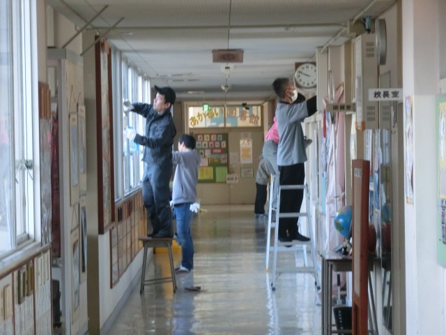 | 2026/02/23 PTA奉仕作業ありがとうございました 2月23日(月)にPTA奉仕作業をしていただきました。4〜6年生の保護者の皆様には、お忙しい中PTA奉仕作業にご参加いただきありがとうございました。6年生の保護者の皆様には、シート敷等の卒業式の会場準備をしていただきました。4・5年生の保護者の皆様には、校舎の1階〜3階の教室・廊下の窓の清掃などをしていただきました。特に窓の清掃に関しては、普段の掃除の時間には行っていなかったので、ずいぶんと汚れていましたので、保護者の皆様に掃除をしていただき大変助かりました。 |