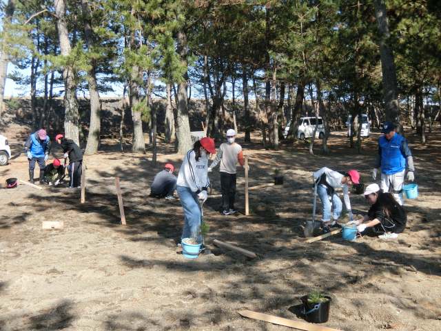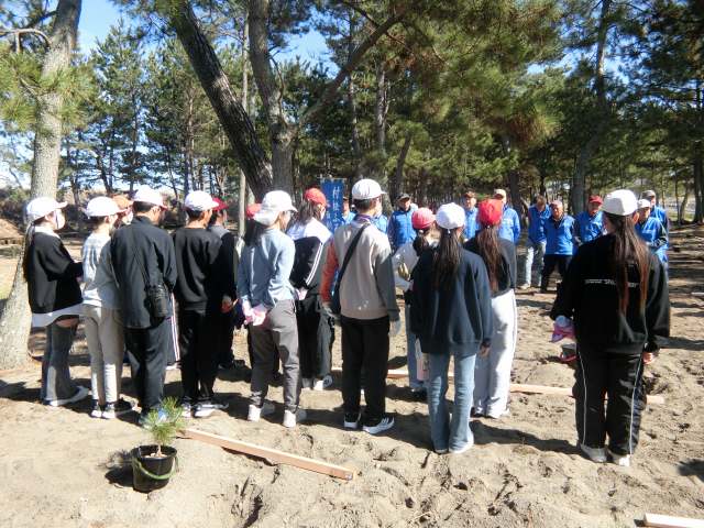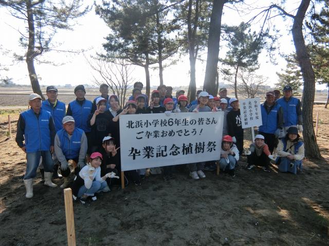 | 2026/02/26 卒業記念植樹を行いました 2月26日(木)午後に村松ふるさと保全会の皆様のご協力により、松苗の卒業記念植樹を実施しました。松苗の記念植樹に関しては、毎年卒業生を対象に行っています。村松ふるさと保全会の皆様には、当日までに松苗の調達や植樹する場所の整備などをしていただきました。 当日は、村松ふるさと保全会会長の濱口好正様より、ご挨拶いただきました。その後、村松ふるさと保全会の方に、穴の掘り方や松苗の植え方等の作業の見本を見せていただきました。そして、2人1組で松苗を3〜4本ずつ植樹しました。最後に記念撮影をしました。子どもたちにとっては、この松苗の植樹もいい思い出となりました。村松ふるさと保全会地域の皆様には、多大なるご協力をいただき、ありがとうございました。 |
