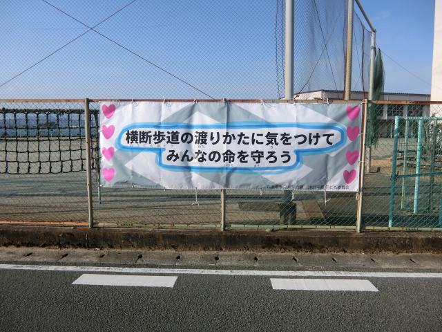 | 2026/03/05 横断幕が設置されました 3月5日(木)午後に横断幕が設置されました。設置については、北浜まちづくり会議の方々にお世話になりました。お披露目会当日は、雨天のため本日の設置となりました。横断幕に記されているように交通安全に気をつけて学校生活を過ごして欲しいと思います。 |