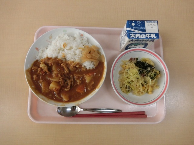 | 2026/03/18 令和7年度給食最終日です 3月18日(水)が今年度最後の給食となりました。メニューはポークカレーライス・かいそうサラダ・ふくじんづけ・牛乳でした。今日もおしいくいただきました。給食調理士をはじめ給食提供の業務に携わていただいた方々に感謝申し上げます。 |