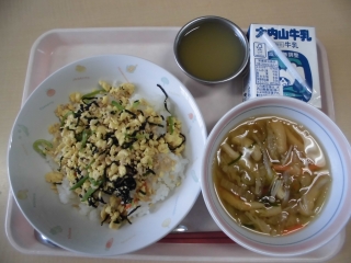 今日の給食は、子どもたち75人みんなの入学や進級を祝う献立「ちらし、おすまし、リンゴゼリー」でした。新学年への期待に胸を膨らませ、自分なりにがんばろうとしている子どもたち。その子に輝けるよう、職員一同全力でサポートしてまいります。