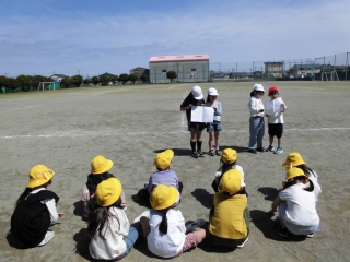 1・2年生は、北浜スポーツグラウンドに行き、みんなと一緒に遊び交流を深めたり、春の草花や虫などの生き物に触れ、自然に親しんだりしました。2年生は1年生のために、お楽しみのゲームを企画してくれていました。2年生は、1年生にそっとアドバイスしたり、手をつないでリードしたり、声をかけて遊びに誘ったりと大活躍していました。1年生も、2年生が言ってくれることを素直に聞き楽しく遊んでいました。