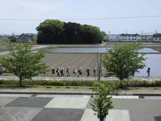 3・4年生は、田植えでにぎやかな田んぼ道を1時間近く歩き、野依ふれあい公園まで行きました。弱音を吐かず、頑張って歩き、仲間の事も気遣いながらみんなで歩けたのは、さすが中学年と感心しました。公園でのマナーを守ることや集団での約束を守ることも意識して行動できていました。