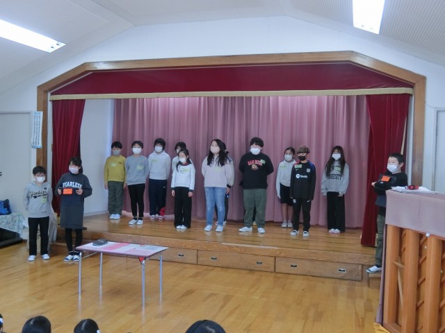 | 2025/12/02 高学年の校内人権集会を行いました 12月2日(火)1限目に高学年の校内人権集会を行いました。まず、11月26日(水)に開催された伊勢市人権フォーラムに参加した6年生から人権フォーラムの内容について報告がありました。その後、5年生と6年生から1人ずつ作文を発表し、作文ごとに自分の思いを伝え合いました。5年生の作文は、「お母さんいつもありがとう」いう題名で、子どもたちからは、お母さんに感謝したい、お母さんの手伝いをしたいなどの意見がありました。また、6年生の作文は、「自分の気持ちをつたえよう」という題名で、子どもたちからは友達などと話すことに関する意見がありました。人権集会で話し合ったことの中で、自分ができることを行動に移して行って欲しいと思います。 |