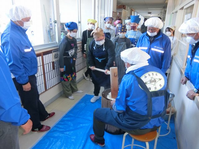 | 2026/01/17 「餅つき」を行いました 授業参観と同日に、「餅つき」を実施しました。この日についた餅のもち米は、5・6年生が村松ふるさと保全会の皆様のご協力を得て、田植え・稲刈りをしたもち米を使用しました。できた餅は、全校児童に振る舞われました。最近では、家で餅つきをすることは、少なくなったと思います。私も「餅つき」をさせていただきましました。「餅つき」でも、村松ふるさと保全会の皆様には大変お世話になりました。ありがとうございました。 |