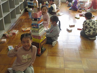 1年生の二限目は、1組が算数、2組は国語の授業でした。算数は、子どもたちが持ってきた空き箱の形に着目して、想像したものを友だちと協力して作っていました。タワーやお城などがあって、みんな楽しそうに活動していました。国語は、自分の見つけたものや事柄を文章で表していました。題名には「ながしのスポンジ」「けやきのはっぱ」「きゅうしょくとうばん」などがあり、生き生きとした表現で感じたことを交えて書いていました。お家の人に読んでもらうことが、今日の宿題となっていました。