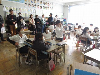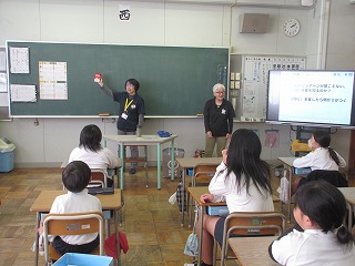 5・6限目、4年生が伊勢市健康福祉部介護保険課の方と伊勢市社会福祉協議会の方をゲストティーチャーとして招き、「手話体験教室」を行いました。授業の中では、聴覚障害のある方から目覚まし時計の代わりに振動で時刻を知らせるもので起きていること、チャイムではなくライトが点滅する道具で来客が分かるようにしていることなどを教えていただきました。また、「おはよう」「こんにちわ」「好き」「楽しい」「勉強」「友だち」「ありがとう」などの手話も教えていただきました。子どもたちはこの教室を通して、障がいの有る無しに関わらず、誰もが暮らしやすい生活環境と思いやりの心の大切さについて、しっかり学ぶことができました。