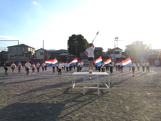 昼休み、児童会主催の色別レクレーションが運動場で行われました。内容は「ケイドロ」で、初めに本部役員さんからルール説明がありました。鬼は本部役員さん、色団長さん、先生と職場体験に来ている中学生でした。鬼にタッチされると人工芝の円の所に入らなくてはなりません。でも、仲間からタッチされると、再び逃げることができます。子どもたちは元気に駆けまわり、汗をにじませる子が多かったです。2学期後半に入った学校生活もみんなで楽しんでいます。11日には赤組・白組で行われ、黄組・桃組は明日行われます。児童会本部役員さん、楽しい行事をありがとう。