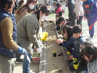 保護者の皆様には、子どもたちの作業がスムーズにいくようにと、事前の準備も行っていただきました。ありがとうございました。子どもたちも保護者の皆様も笑顔になるステキな「第2回親子花植えの会」でした。