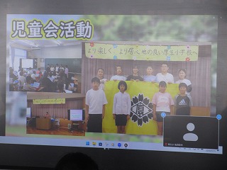 厚生中学校区青少年健全育成協議会主催の「地域・学校交流事業(zoomによるオンライン会議形式)」に6年生が参加しました。この事業は、厚生中学校区の3校の児童生徒が、自校の良さを再発見することで自校や地域を誇りに思う気持ちにつなげること、次年度、共に学ぶ仲間や地域の方と交流することで、4月に良いスタートが切れることをねらったものです。前半は小中3校が学校紹介「学校自慢」を行い、続いて、小学生が中学生に質問を行いました。「クラブ」「服装」「授業」などについての質問がありました。最後に、「中学時代に大切にしたいこと」について交流し、地域の先輩方にアドバイスをもらいました。途中、機械的なトラブルがありましたが、6年生の子どもたちにとって貴重な時間となりました。