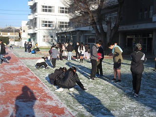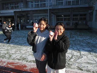 今朝は、校庭にうっすらと雪が積った一日のスタートでした。歩道の路面が凍っている所もあり、子どもたちが安全に登校できるか心配していましたが、途中、転んでけがをする子もなく、みんな元気よく登校してきてひと安心でした。子どもたちは学校に着くとすぐに雪遊びです。雪だるまを作ったり、友だちと雪の当て合いをしたりして、いつもとは違った朝の光景でした。