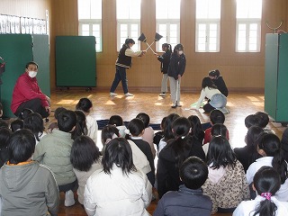 1限目に集会を行いました。内容は、初めに私から、日本時間の6日から始まる「ミラノ・コルティナ冬季オリンピック」のことを例に挙げ、夢や憧れをもち、好きなことを見つけて小さな時から頑張ることのすばらしさを伝えました。続いて、「健全育成会の標語」と「教育美術展」に関する表彰がありました。児童会本部からは、1月の生活のふり返りと2月の生活目標「言葉づかいを見直そう」の発表と呼びかけ、児童会レクの説明がありました。その後は、園芸・給食委員会・保健委員会・図書委員会・体育委員会からはお知らせが続き、先日行われた長縄大会の結果も発表されました。最後に生徒指導担当から、みんなが気分よく過ごせる学校にするために、「優しい言葉を使おう」「ろうか、ワークスペースでの過ごし方を考えよう」という話がありました。